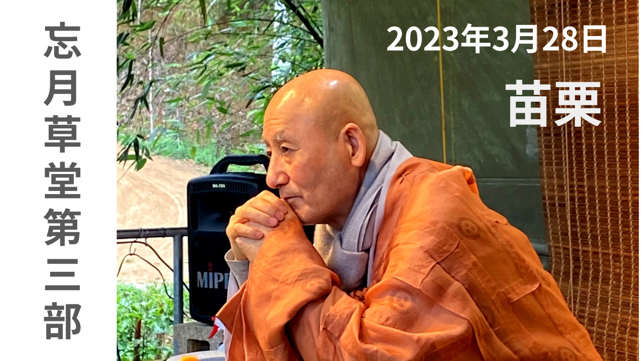 스승님께서는 노거사님에게 죽비 소리에 맞춰 앞으로 세 걸음, 다시 뒤로 세 걸음 걷게 하시고,